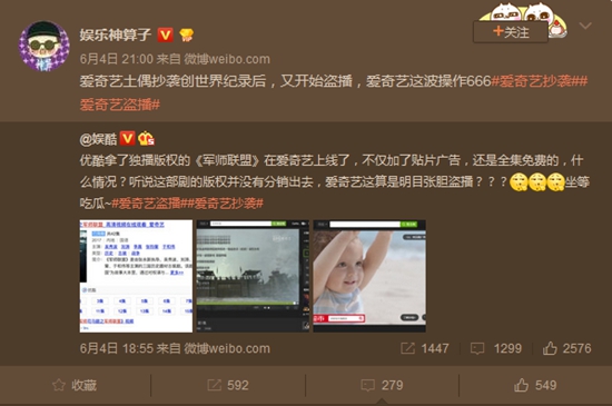 此外,近一年爱奇艺为筹备上市,一直以减少内容上的投入来美化财报。此次,爱奇艺采用“抄袭韩综”和盗播《军师联盟》等投机取巧的路子,怕也是担心内容上被另外两家KO吧。殊不知,夜路走多了总会摔倒的,爱奇艺醒醒吧!