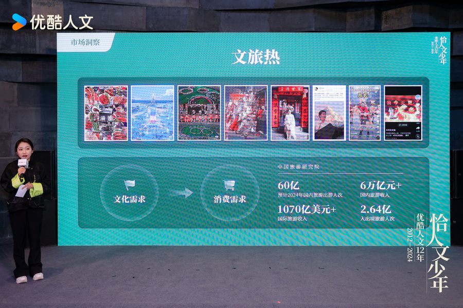 此次优酷人文12年内容发布会,主要由2024年新节目片单发布、2024人文趋势发布、创作团队解读、大屏倡议论坛、人文行旅、人文内容商业化6个部分组成,不仅从优酷人文情怀及用户视角出发指引人文未来,也在王牌IP、创新内容、大屏场景、人文行旅等多方面进行了全方位发布,为全行业呈现了人文节目IP模式的新玩法。